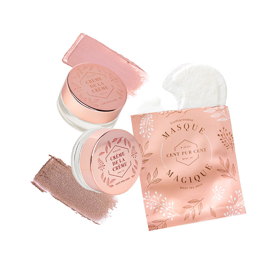De Crème de la Crème is een oogschaduw in moussevorm met een lichte textuur en een intense kleur. Deze 2 nieuwe kleuren Romance en Glacé Rosé vullen elkaar perfect aan en zijn zowel geschikt voor een dagdagelijkse look als een glam-look! Met de Masque Magique Eyepatches krijg je een stralende en frisse blik er gratis bij.
